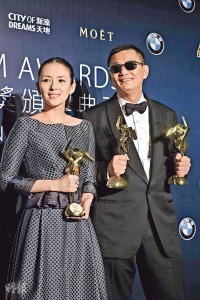 Max Zhang won his first Hong Kong Film Award for Best Supporting Actor, he was so emotional that he sobbed with his wife Ada Choi in an embrace. He said as he cried, “Thank you Zhang Ziyi, thank you Leung Chiu-wai, special thanks to Yuen Woo Ping, without Yuen Woo Ping I couldn’t work with Wong Kar-wai. Thank you Wong Kar-wai, people say that making his film would win an award.  I got it, I wouldn’t even dream it. Thank you to my wife Choi Siu-fun. Some have said that I would depend on her for the rest of my life, yes! My happiness for the rest of my life will depend on her. Once due to bad attitude I said to me, ‘What use is it that you are the only one who appreciates me in the world?’  Now everyone appreciates me.  At the wedding that we would weather any storm together, we have experienced too many storms.  I hope in the future we will have more scenery.  From now on for richer or for poorer we have to spend it together.” Zhang later accepted the Best Action Choreography award for Yuen Woo Ping. He said, “One of the missing on the Malaysia Airline flight is the film’s action coordinator Ju Kun. Now since the matter still has not been cleared up, I want to loudly say to him, Ju Kun part of this award belongs to you, come back soon!”